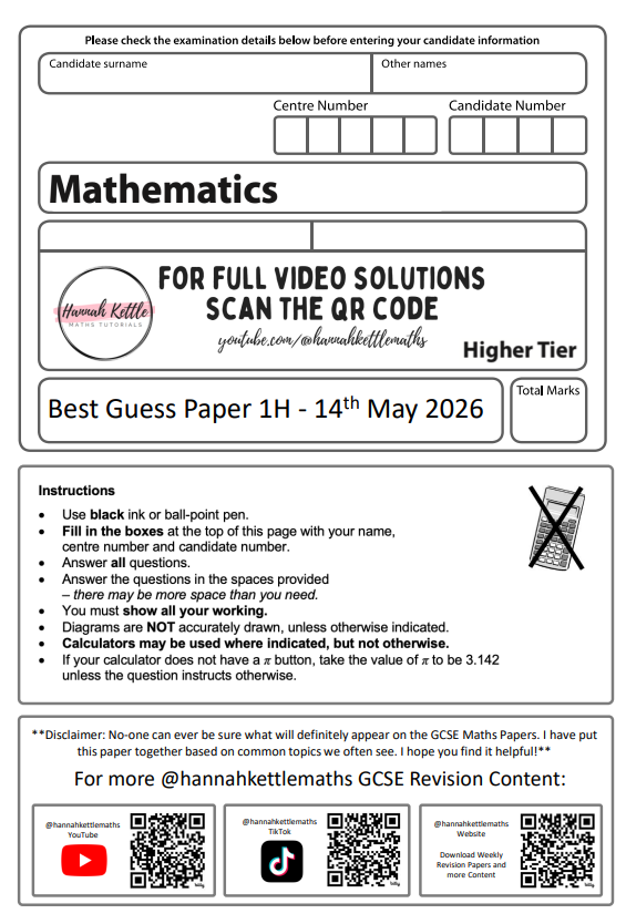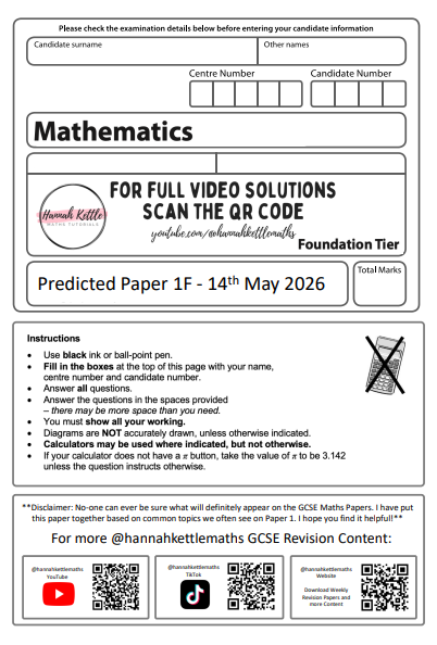 These are my 'best guess' predicted papers using commonly appearing topics from the GCSE Edexcel Papers. Click the image to download the paper.